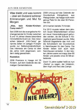 Weitere Beiträge zu den Kinder-Kirchen-Camps der letzten Jahre finden sie meist in der jeweiligen Ausgabe 2 der Gemeindebriefen des betreffenden Jahres [hier]