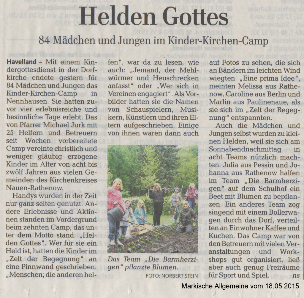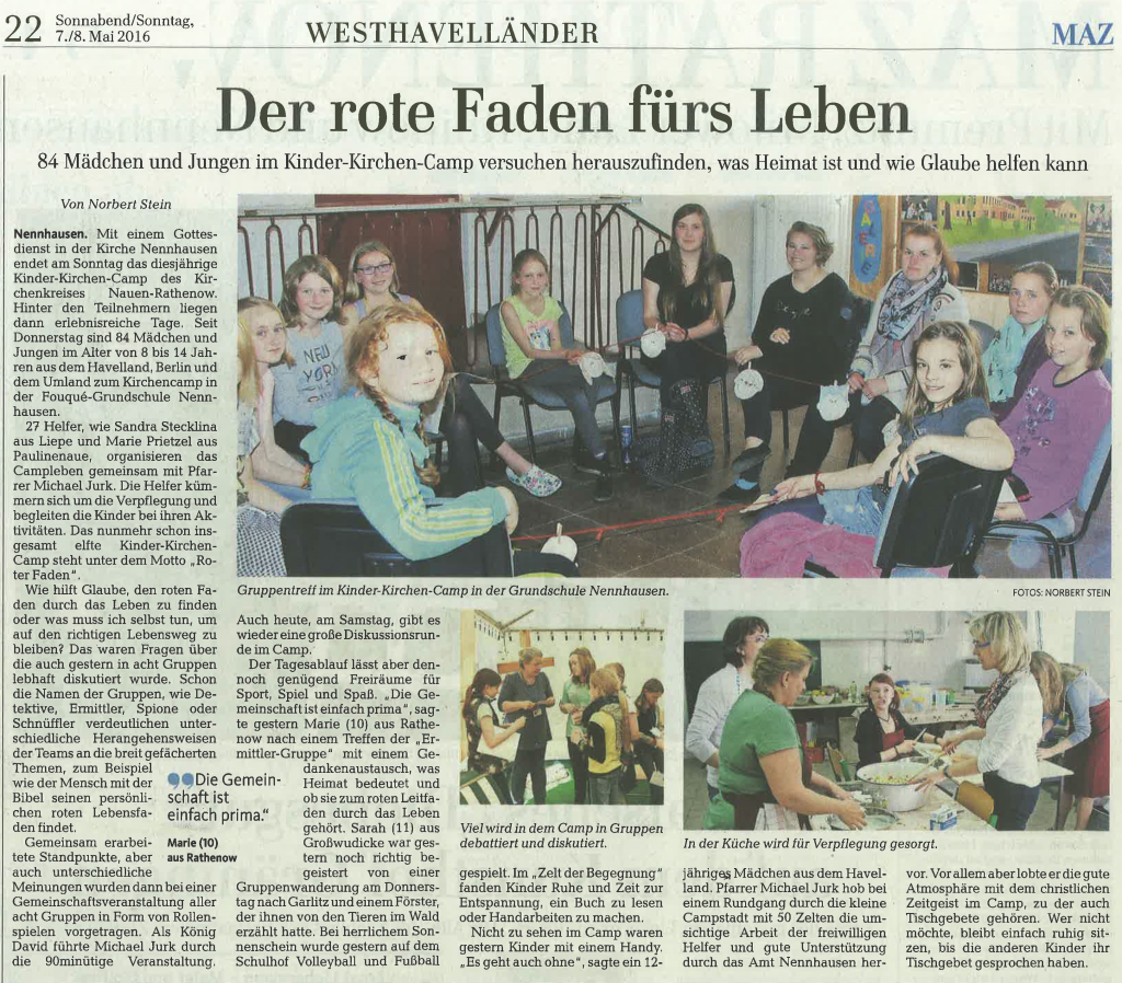 - Nennhausen: Kirchen-Camp für 84 Kinder - MAZ-Online vom 06.05.2016